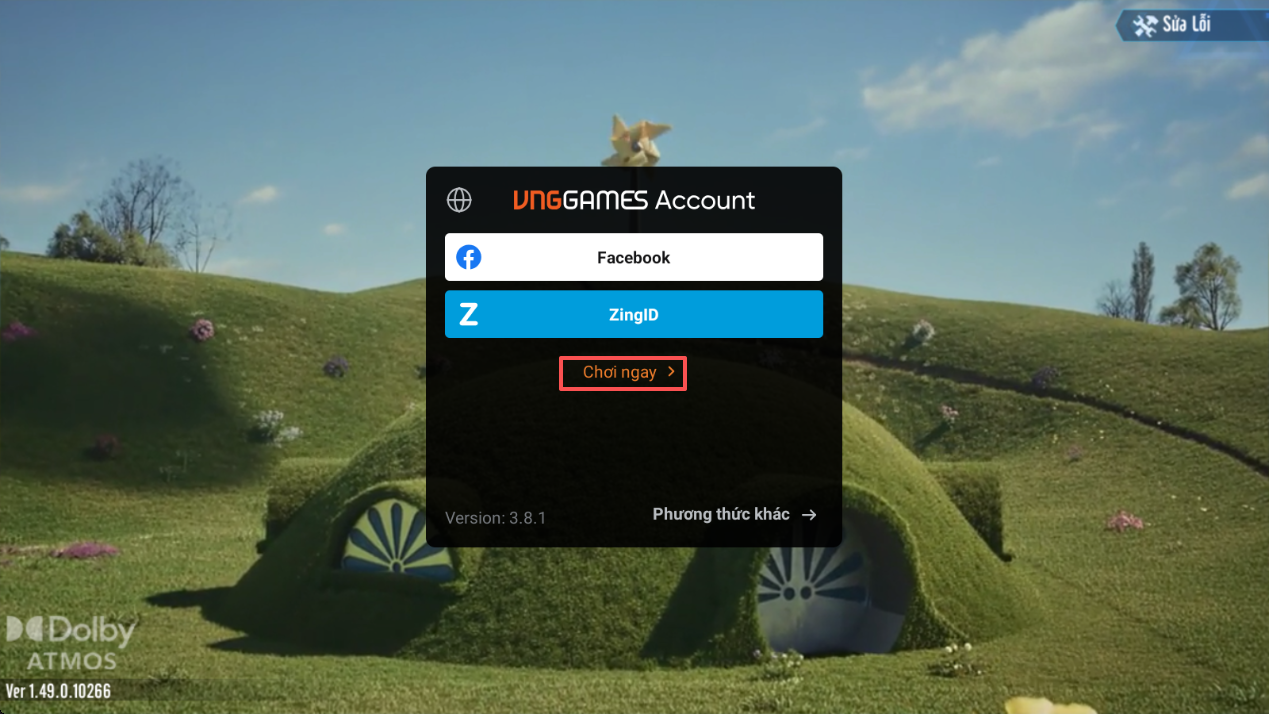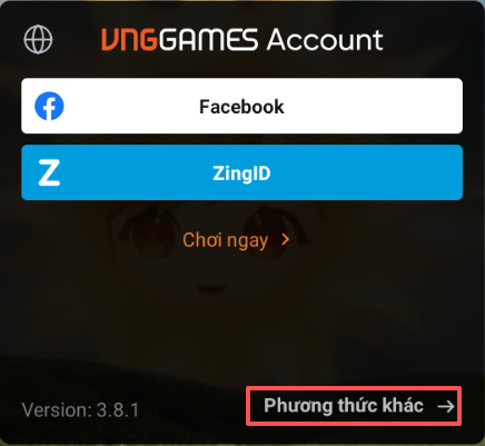 Ngoài cách sử dụng tài khoản Zing ID, Facebook hoặc Zalo, Racer cũng có thể dùng hình thức Chơi ngay để chơi game ZingSpeed Mobile.