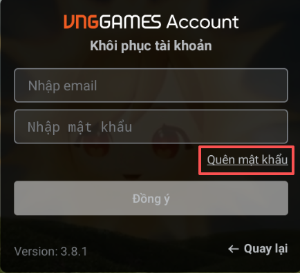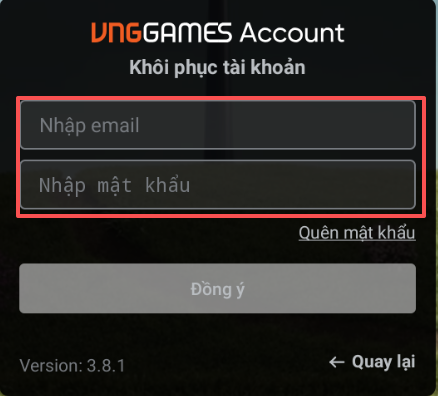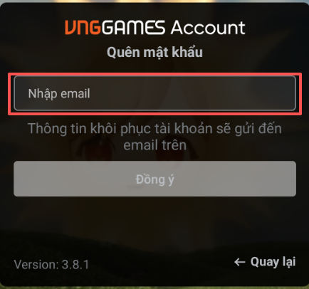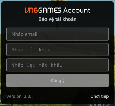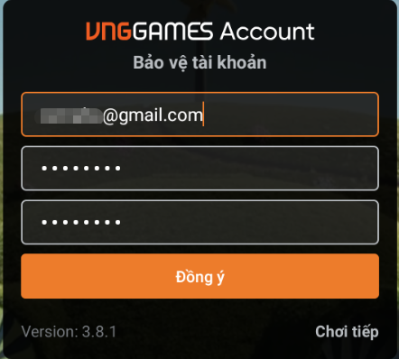 Nhập email bảo vệ và mật khẩu đăng nhập game (mật khẩu là mật khẩu của tài khoản chơi ngay, không phải mật khẩu của email).