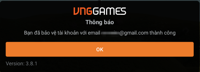 Cuối cùng ấn Đồng ý để hoàn tất. Như vậy tài khoản của Racer đã được bảo vệ. Tài khoản này sẽ không bị mất khi chơi ở thiết bị khác hoặc lỡ tay xóa game.
