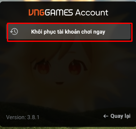 Sau đó chọn Khôi phục tài khoản chơi ngay.