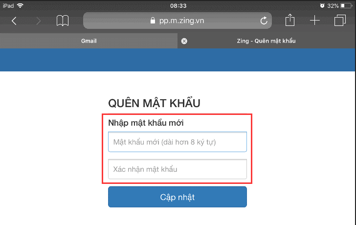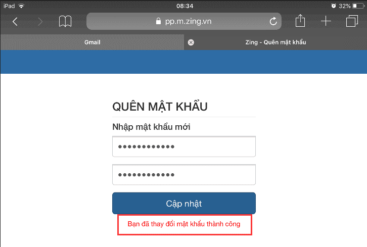 Nhấp Cập Nhật để hoàn tất Đổi Mật Khẩu Tài Khoản Chơi Ngay.